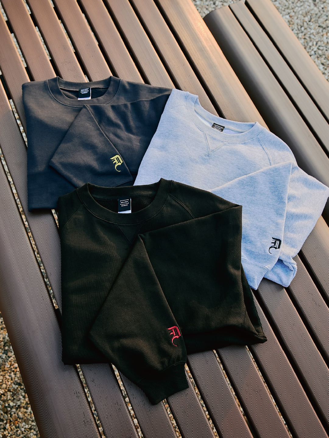 定番シルエットのスウェットクルーネック。左袖先には刺繍のオフィシャルDロゴ をデザイン。
