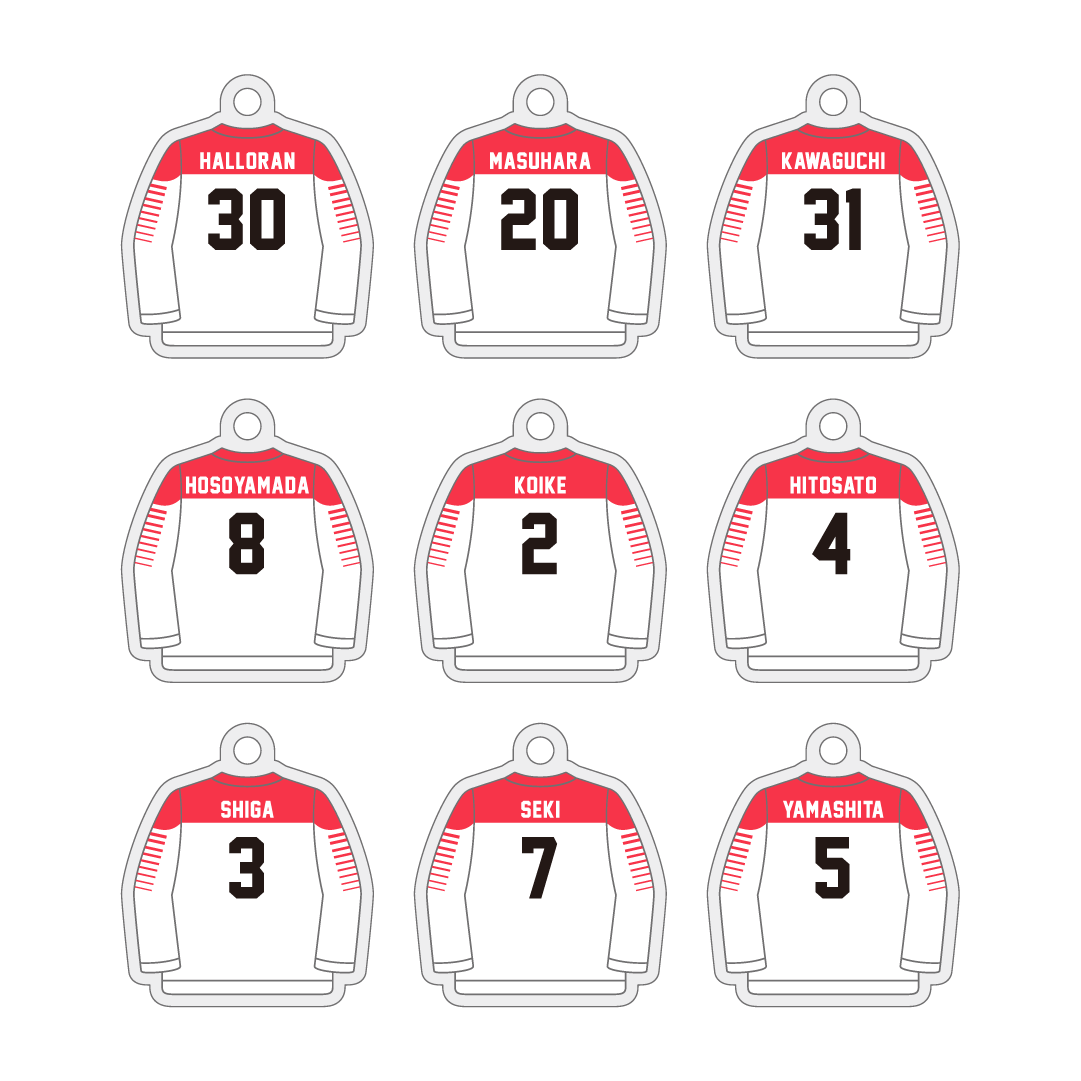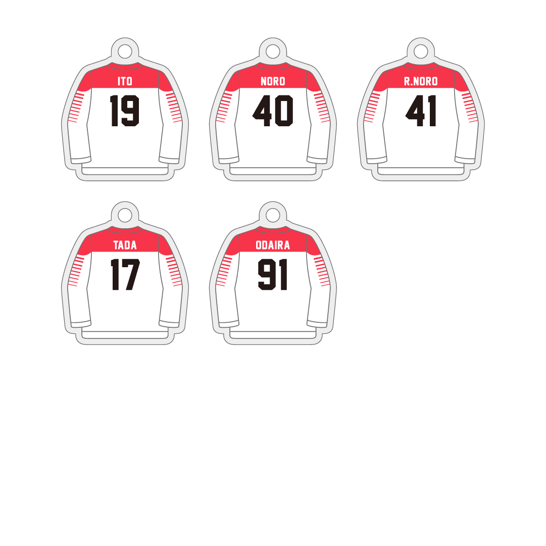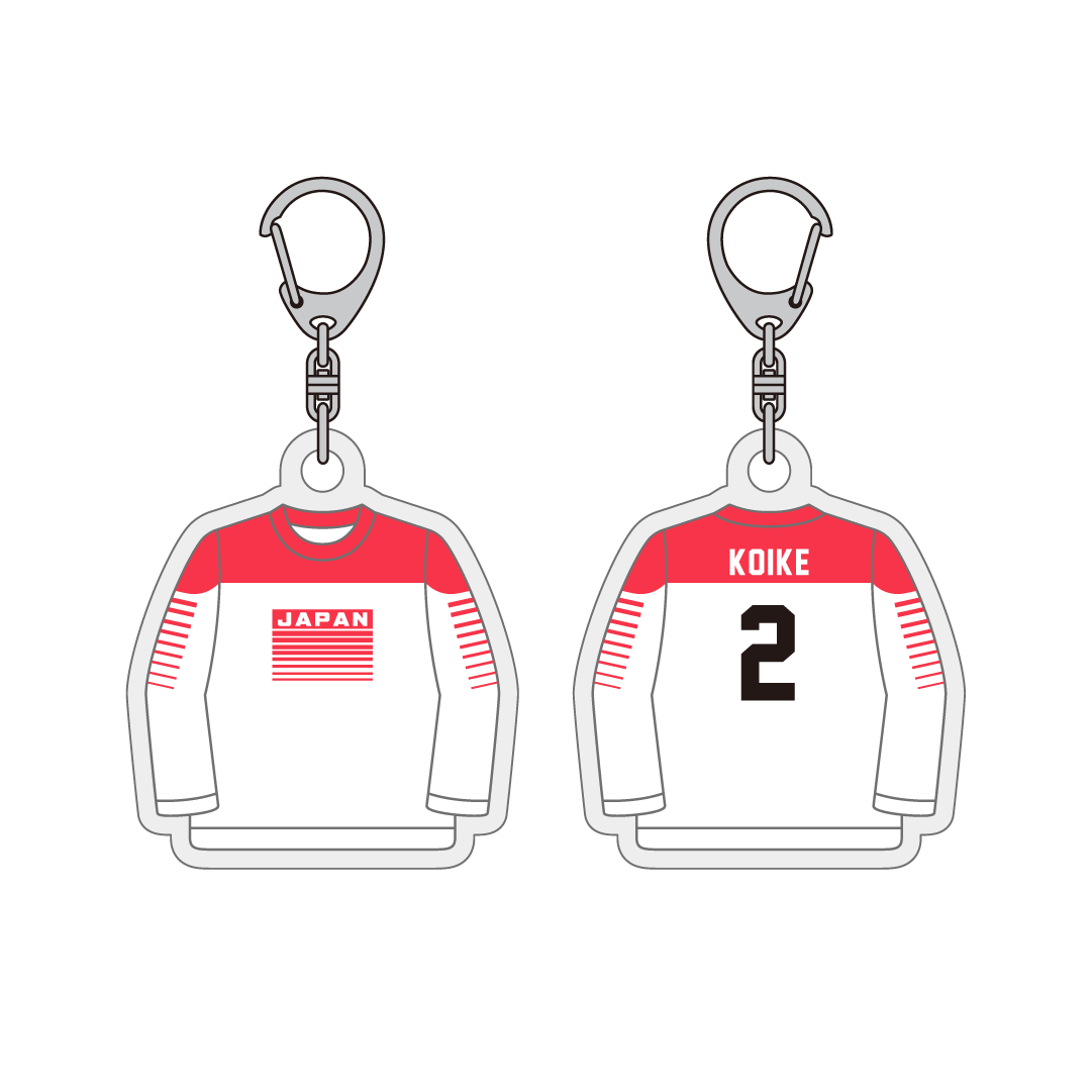 アイスホッケー日本代表ユニフォーム型のアクリルキーホルダーです。
