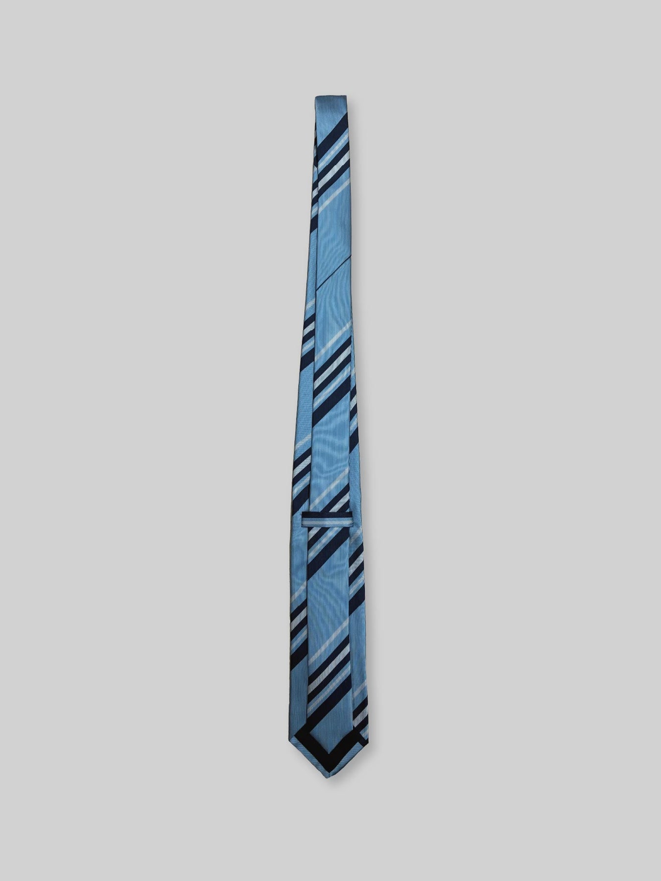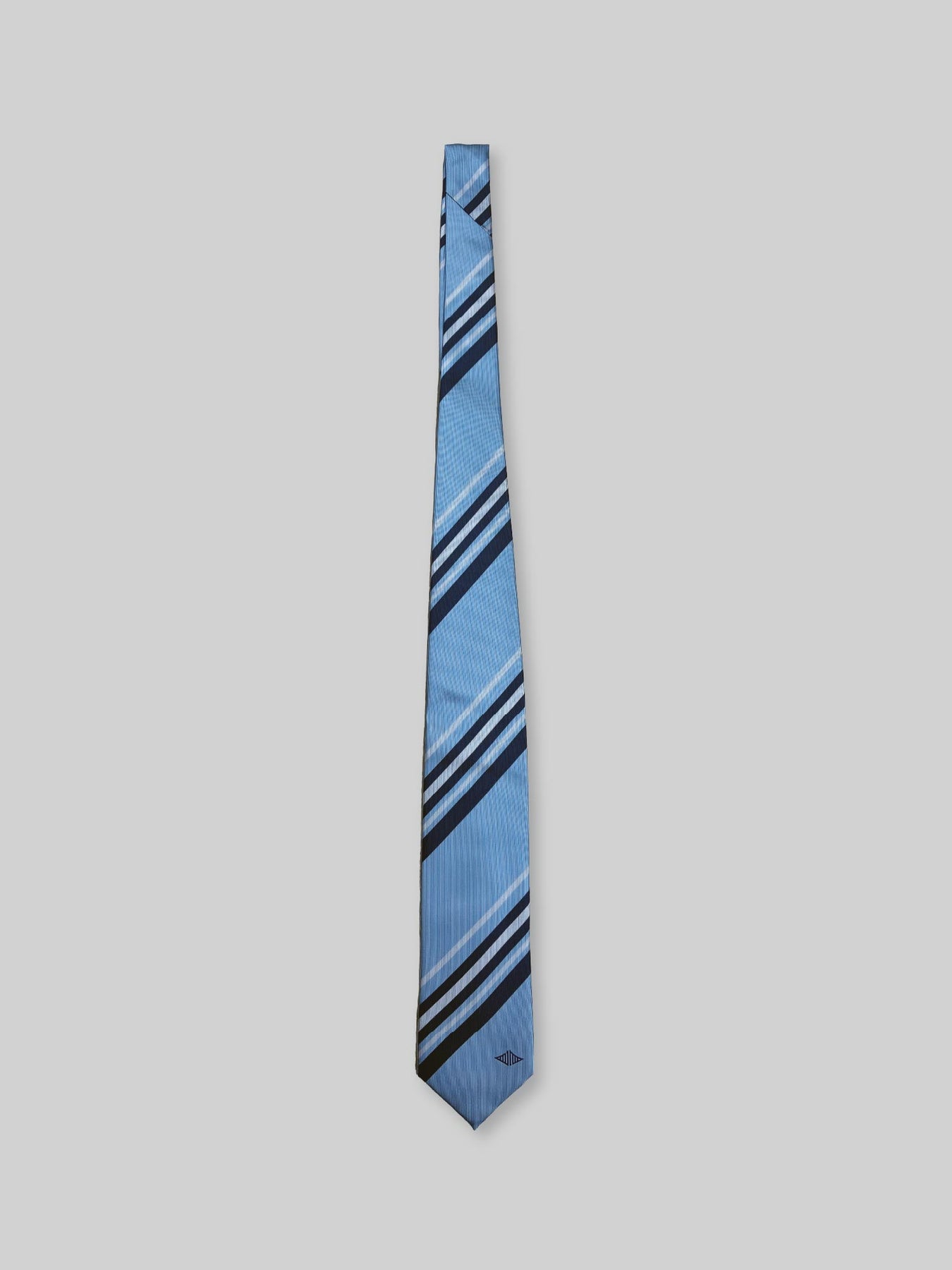 鮮やかなサックスブルーベースのストライプ柄のネクタイです。