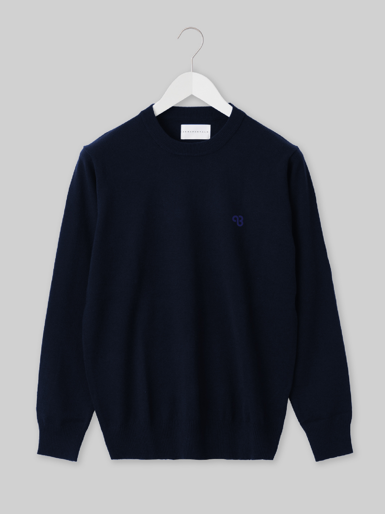 KYUSAN ニットクルーネック キューサンロゴ ネイビー