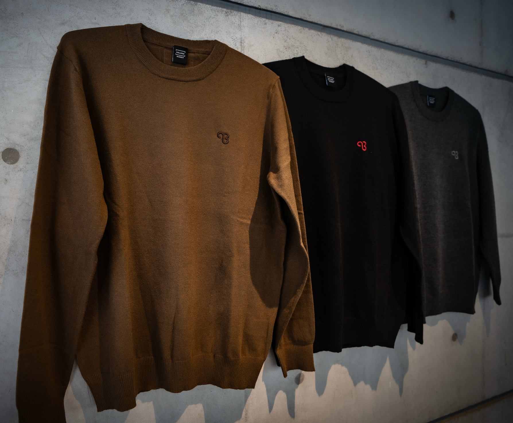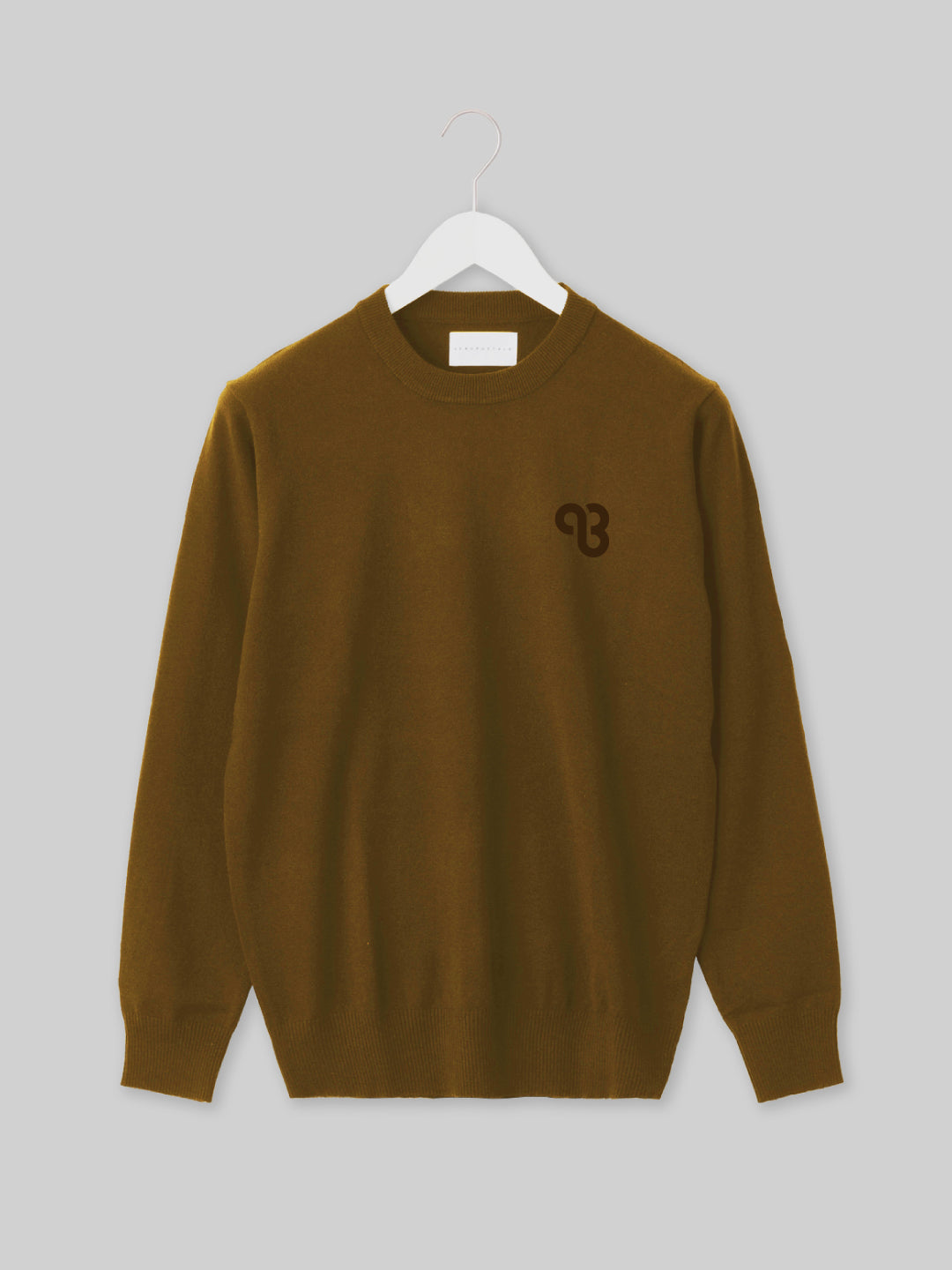 KYUSAN ニットクルーネック キューサンロゴ ブラウン